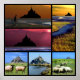 Sechs mosaikische Fotos der berühmten Abtei Mont-Saint-Michel in Frankreich am Ärmelkanal