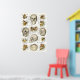 14 Abbildungen der Knochen des menschlichen Schädels. Äußere und interne Ansichten. Abschnitte mit Details der Augenumlaufbahn, der Sinus und der Gesichtsknochen. Farbkodiertes anatomisches Plakat zur einfachen Erkennung der Knochen.