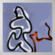 Abstraktes Drucken der sitzenden Abbildung und Katze mit ergänzenden und monochromen blauen Farbschemas einschließlich Schwarz und Weiß