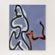 Abstraktes Drucken der sitzenden Abbildung und Katze mit ergänzenden und monochromen blauen Farbschemas einschließlich Schwarz und Weiß