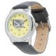 Kinder Edelstahluhr mit schwarzem Lederarmband