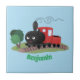 Dieser glückliche Dampfzug pfifft über die Landschaft. Gezeichnet in niedlich animiertem Illustrationsstil. Lokomotive Spaß!