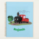 Dieser glückliche Dampfzug pfifft über die Landschaft. Gezeichnet in niedlich animiertem Illustrationsstil. Lokomotive Spaß!