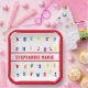 Das Alphabet ist in hellen, farbigen Schablonenbuchstaben gehalten, genau wie die Kühlschrank Magnete, die wir alle kennen! Der Name für Baby (oder das Fälligkeitsdatum - Ihre Wahl) wird in hellen, roten Buchstaben in der Mitte des Designs angezeigt. Ideal für eine ABC-Themed Baby Dusche!