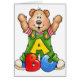 Ein Teddybär, der den Buchstaben ABC vor ihm hat