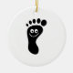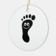 Einfache feste schwarze Grafik eines Druckes des menschlichen Fußes mit einem glücklichen lächelnden Gesicht. Fertigen Sie besonders an und wählen Sie Ihre eigene Hintergrundfarbe. Bild verfügbar auf verschiedenen Geschenken und Produkten.