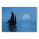 Eine Yacht, die auf einem ruhigen Ozean in Richtung der Abend-Sonne segelt. Passen Sie diese Karte mit Ihren eigenen Worten für jeden Anlass an.