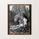 Vintage Kunst mit dem Malen von Eben im Garten von Eden mit der Schlange in Schwarz und Weiß mit dem Abend sitzt auf dem Boden und neben ihr ist die Schlange, die sie mit einem Lächeln anschaut, während sie ihm zuhört. Selbst sitzt auf dem Boden in einem Wald. Selbst hat lange Haare und Kopfbänder auf ihrem Kopf und die Schlange hat Schlangenmuster auf seinem gekochten Körper, selbst aus der Bibelgeschichte von Adam und sogar in der Schlange. Garten von Eden. Vintage biblische Illustration von Sieb und Schlange.