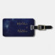 Gold astrale Flecken, die den Eindruck von Sternen am Himmel vermitteln, leuchten über den Worten auf einem blauen Hintergrund. Ein modernes Thema für einen Abend stilvolle, individuelle Hochzeitsgepäck-Tag. Ändern Sie einfach die Informationen für Ihr eigenes, individuelles Design.