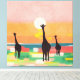 Erleben Sie die Stille eines Savanne Sonnenuntergangs, während die silhouetted Giraffen einen Abend Spaziergang machen. Weiche Pastelltöne und warme Farbtöne machen die ruhige Schönheit der Natur aus.