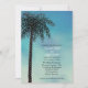 Eine große Palme mit Lichtern beleuchtet diese tropische Hochzeitseinladung auf türkisfarbenem Hintergrund, was sie perfekt für die Hochzeit am Ziel, in der Karibik, Hawaii, Florida, tropisch, am Pool, im Sommer oder am Strand macht. Koordinationsgegenstände finden Sie in der String Lights Palm Tree Wedding Collection. Falls Sie weitere Informationen benötigen, kontaktieren Sie uns bitte unter prettyfancyinvites@gmail.com