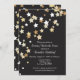 GoldGlitter-Beschaffenheitssterne auf schwarzem Hintergrund. Abend unter der Sterngeburtstagseinladung.