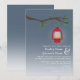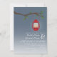 Eine Hochzeitseinladung im Freien mit einer Illustration einer roten Öllaterne, die an einem Baum mit grünen Blätter hängt. Personalisieren Sie den Text mit Ihren Informationen.