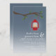 Eine Hochzeitseinladung im Freien mit einer Illustration einer roten Öllaterne, die an einem Baum mit grünen Blätter hängt. Personalisieren Sie den Text mit Ihren Informationen.