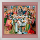 Dieses Tafel wurde 1503 von einem anonymen mittelrheinischen Künstler gemalt und zeigt das in Johannes 12:1-3 erwähnte Abendessen, das in Bethany nach dem Aufziehen von Lazarus stattfand und kurz bevor Jesus am Palmensonntag in Jerusalem ankam. So ist die Stimmung feierlich - merrier und weniger düster als die des letzten Abendmahls, die am folgenden Donnerstag (Donnerstag, 20. Mai) stattfand. Es ist die zentrale Tafel des Triptychentafels, die den Martha-Altar des Südchores der Frauenkirche (Liebfrauenkirche) in Oberwesel, Rheinland-Pfalz, bewundert. + Hier sitzen Jesus und Seine Zwölf Apostel an einem runden Tisch, vermutlich einer von mehreren im Raum, da das Evangelium auf die Anwesenheit von mehr Teilnehmer, einschließlich Lazarus andeutet. Der Tisch wird einzeln betrachtet, je besser das Geschirr und die Lebensmittel zu sehen sind. Die Apostel sprechen untereinander. Eine (St. Bartholomäus?) geschnitten Brot. Im Vordergrund dient St. Martha, eine Schürze tragen und eine Fischplatte tragen, (wie St. John so prägnant formuliert). In der Zwischenzeit, St. Mary, fälschlicherweise identifiziert, als das altarpiece wurde mit der penitenten Magdalene und eine namenlose sündige Frau, Knien gegenüber. Beide Frauen tragen Kleidung aus kostbaren Materialien. Zwischen ihnen kniet der Spender, Canon Peter Luteran, der in einem stark reduzierten Maßstab vertreten ist. Die überfüllte Szene bricht mit Energie und dem impliziten Lärm belebter Gespräche und klatschendem Geschirr. + Sehen Sie auch die St. Martha Artikel - Schürze, Ofen Mitt, Potholer und Serviertabletts - aus unserer Schürze Heilige Serie (q.v.) zu mischen und zu vergleichen! + Image Credit (M 055): Foto von Rolf Kranz eines 100 Jahre alten Gemäldes im öffentlichen Bereich von WikiMedia Commons (Von Rolf Kranz - Eigene Arbeit, CC BY-SA 4.0, https://commons.wikimedia.org/w/index.php?curid=106002864). Das Foto wurde eng auf ein grenzenloses Rechteck zugeschnitten.