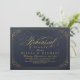 Elegante handgeschriebene Kalligraphie-Skripte mit geblüht Rahmen in Marineblau und Imitaten goldfarben, sauber und formell, großartige Probe Dinner Einladungen für Vintage Hochzeit, traditionelle Hochzeit und klassische Hochzeit das ganze Jahr über. Sehen Sie sich alle passenden Stücke in der Sammlung an.