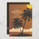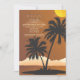 Eine tropische Szene mit Palmen und Vollmond - ideal für ein Abendessen in der Hochzeit in Urlaubsort Probe.Die Karte lässt sich leicht mit Ihrem Text, Schriftart, Schriftart, Papierform und der Auswahl von sechs Papiertypen anpassen.
