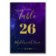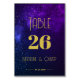 Ein Abend-Himmel mit lila Farbe und einem modernen, eleganten Schriftart ist das Design für diese Hochzeitstischkarte. Die Informationen können leicht in Ihr persönliches Design geändert werden. Der Text ist für Ihre eigenen Tischnummern und individuelle Namen und Datum leicht zu ändern.