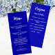 Hochzeitsempfang und Menü. Personalisieren und hinzufügen Sie Ihren Namen, Ihr Programm und das Menü. Königlich blauer Hintergrund, weißer Text. Zurück: Fügen Sie die Feier Dinner Menü.