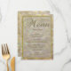 Dieses elegante Dinner-Menü in goldfarbenen Buschleuchten kann individuell gestaltet werden. Sie können den Schriftart und die Farben der meisten Texte ändern. Designed by Amelia Carrie und verkauft ausschließlich über GlitterInvitations.com Hinweis: Dies ist ein Grafik-Print-Reproduktion oder Kunstwerk und enthält keine chaotischen Glitzer.