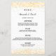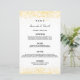 Ein elegantes Hochzeitsmenü. Ein stilvoller weißer Hintergrund, mit goldenen Konfetti dekoriert. Personalisieren und fügen Sie Ihre Namen, Datum und das Hochzeitsmenü.
