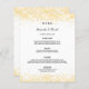 Ein elegantes Hochzeitsmenü. Ein stilvoller weißer Hintergrund, mit goldenen Konfetti dekoriert. Personalisieren und fügen Sie Ihre Namen, Datum und das Hochzeitsmenü.