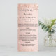 Eine elegante, glamouröse Menükarte. Personalisieren Sie Ihren Namen, das Datum und das Menü und fügen Sie es hinzu. Rose goldener Hintergrund, verziert mit Rose Gold Imitate Glitzer Glitzern.