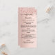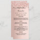Eine elegante, glamouröse Menükarte. Personalisieren Sie Ihren Namen, das Datum und das Menü und fügen Sie es hinzu. Rose goldener Hintergrund, verziert mit Rose Gold Imitate Glitzer Tropfen, Farbe Tropfen aussehen.