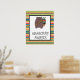 Adorable digital art poster feature Boho Bear with his colorful quiver of arrows, "Adventure Awaits" text and multicolored striped background