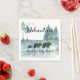 Abenteuerlustige, rustikale Wälder tragen Babydusche Papierservietten, mit einer Familie von Bären, die auf einem weißen Hintergrund laufen. Die Abenteuertypografie ist ein skurriler rustikaler Schriftzeichen-Stil. Rustikaler und niedlicher Stil.
