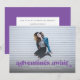 Diese vollständige Ankündigung und Einladung des Foto Abschlusses enthält lila die Worte "Abenteuer warten". Es hat Platz für die Details Ihres Absolventen auf der Vorderseite mit noch mehr Platz für Text auf der Rückseite der Karte.
