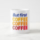 Eine spielerische "Aber First Coffee" Tasse für echte Kaffeeliebhaber. Lange Keramik, perfekt für den täglichen Kaffee oder Tee und ein lustiges Geschenk für Freunde oder Kollegen.