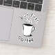 Ein heißer Kaffee in einer Tasse mit dem Zitat "Aber erster Kaffee".