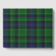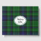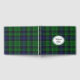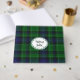 Kariertes Hochzeitsgast-Buch im klassischen schottischen Grün, Blau, Weiß und Schwarz Abercrombie Clan karierte Muster gemacht. Ein weißer, ovaler Textbereich, der auf der Vorderseite des Buches steht, hat einen eigenen Text, der für Ihre Hochzeit personalisiert werden kann.