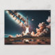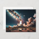 Raketenschiff startet von einem Alien Planeten mit der Milchstraße im Hintergrund