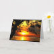 Ein Boot, das während eines goldenen und orangefarbenen Sonnenuntergangs entlang eines ruhigen Sees treibt, ist das Thema meiner Glückwunschkarte, die ich Ihnen zum Sonnenuntergang aussprechen möchte. Ich fotografierte diese Szene entlang der Küste des schönen Winnebago in Quinney, Wisconsin.