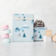 Blauer Abfahrtsläufer mit Bergen auf hellblauem Hintergrund mit Schneeflocken Die Hintergrundfarbe kann geändert werden.