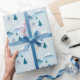 Abfahrtskier in Schneeflocken Geschenkpapier