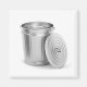 Leere Metalldose mit Deckel auf weißem Hintergrund