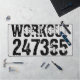 Abgelaufener Text Workout 247365 in schwarzer Farbe mit weißem Hintergrund. Perfekt für alle, die sich im Fitnessraum bewegen, Fitness, trainieren, Bodybuilding und trainieren.