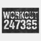 Abgelaufener und kratzter Text Workout 247365 Vintag in Weiß mit schwarzem Hintergrund. Perfekt für alle, die sich im Fitnessraum bewegen, Fitness, trainieren, Bodybuilding und trainieren.