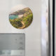 Runder Foto Magnet mit dem leeren, abgeschiedenen Strand Tonnarella dell'Uzzo an der felsigen Nordküste Siziliens im Lo Zingaro Nationalpark, zwischen Scopello und San Vito Lo Capo, baden im rauen Morgenlicht.