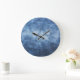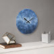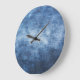 Abgetragener Denim-Stoff, texturierter Hintergrund Große Wanduhr