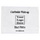 Oben wird Text in schwarzem Skript für eine benutzerdefinierte Nachricht angezeigt. (Abbildung: Curbside Pick-up) In der Mitte ist ein Display-Bild, dass Sie mit Ihrem Firmenlogo ersetzen können. Unten ist schwarzer Text für Ihren Firmennamen und Ihre Website (oder eine personalisierte Nachricht).