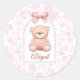 Abigail | Benutzerdefiniertes rosa Teddy-Bär-Kinde Runder Aufkleber