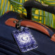 Dieses abstrakte, monogramm-Design erinnert an einen marokkanischen Teppichboden und ist in leuchtenden Farben in marineblau, lavendisch, schwarz und weiß gehalten.