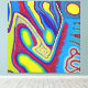 Treten Sie ein in das Reich der Träume und Farben Gelb, Blau und Rot! Diese stilisierte strukturierte abstrakte Kunst der Aborigine porträtiert fantasievolle Kreaturen und mystische Wasserscapes.