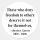 "Diejenigen, die anderen die Freiheit verweigern, verdienen sie nicht für sich selbst" - Abraham Lincoln.
