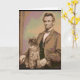 Dixie sitzt auf Abes Schoß, wo sie nichts verpasst. Die perfekte Geburtstagskarte für eine Person, die am oder in der Nähe des Geburtstages von Licoln geboren ist.
