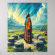 Dieses Kunstwerk illustriert wunderbar den Moment aus Genesis 15, als Abram in Glauben aufblickt, stehend vor einem Steinaltar unter einem strahlenden blauen Himmel. Abrams friedliche Haltung spiegelt sein tiefes Vertrauen in Gottes Versprechen wider, das von fließenden, farbenfrohen Gewändern in Rot, Orange und Weiß bekleidet ist. Die Szene ist mit üppig grünem Gras, sanften Hügeln und einer ruhigen Landschaft bereichert, die die heilige Atmosphäre verstärkt. Abram steht auf einem runden Kachelboden, umgeben von sorgfältig platzierten Steinen, der ihn in diesem entscheidenden biblischen Moment erden lässt. Die atemberaubende Landschaft rundet diese zeitlose und ehrerbietige Darstellung ab.